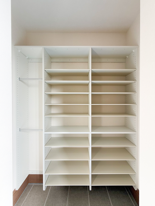 オープンタイプのシューズクローク。工具やアウトドア用品などの収納にも役立ちます。