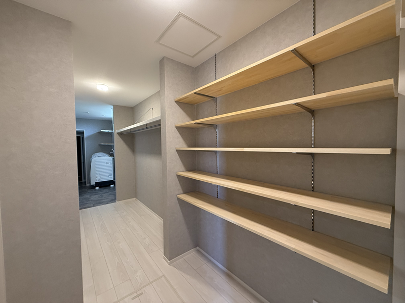 家族専用の動線は収納やファミリークローク、浴室までが一直線につながっていて機能的。