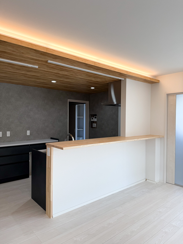 折り下げ天井に照明を仕込んでスタイリッシュに。